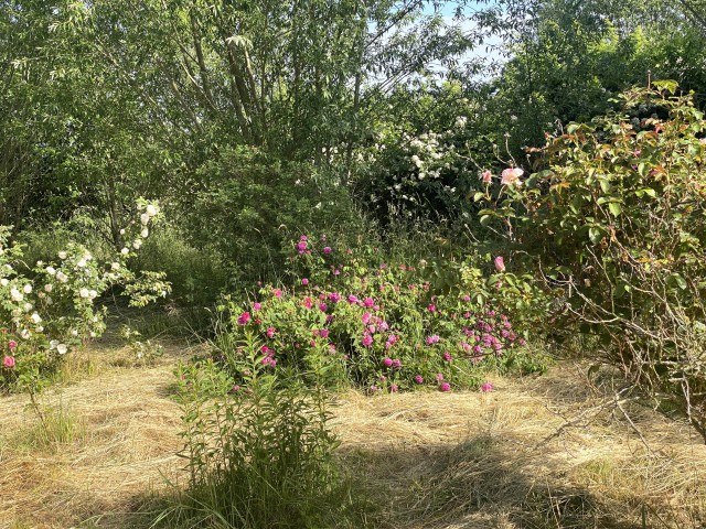 im Privelacker Paradiesgarten wachsen unzählige Rosen. Die meisten davon mit insektenfreundlichen, offenen Blüten, aber auch viele historische, schon im Auftrag von Napoleons Frau Joséphine de Beauharnais auf Malmaison gezüchtete Rosen, die, wie es der damaligen Vorstellung entsprach, dicht gefüllt sind.