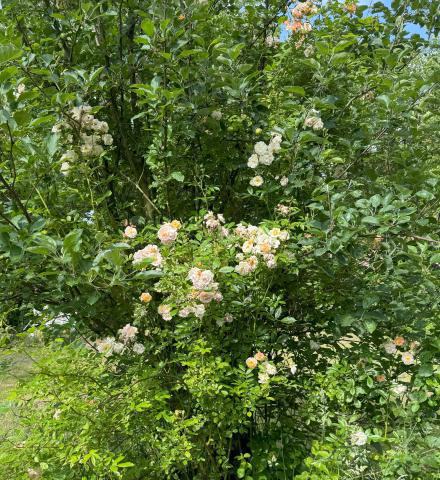 im Privelacker Paradiesgarten wachsen unzählige Rosen. Die meisten davon mit insektenfreundlichen, offenen Blüten, aber auch viele historische, schon im Auftrag von Napoleons Frau Joséphine de Beauharnais auf Malmaison gezüchtete Rosen, die, wie es der damaligen Vorstellung entsprach, dicht gefüllt sind.