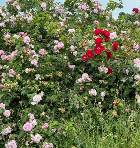 im Privelacker Paradiesgarten wachsen unzählige Rosen. Die meisten davon mit insektenfreundlichen, offenen Blüten, aber auch viele historische, schon im Auftrag von Napoleons Frau Joséphine de Beauharnais auf Malmaison gezüchtete Rosen, die, wie es der damaligen Vorstellung entsprach, dicht gefüllt sind.